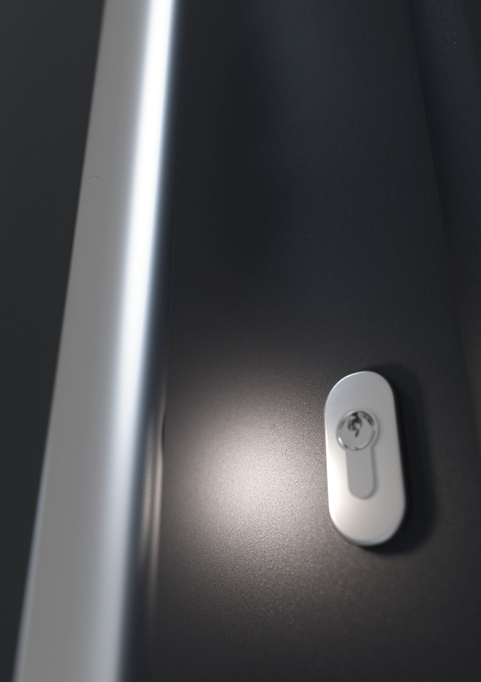 Der neue Stangengriff mit integrierter LED-Beleuchtung für Thermo65 Haustüren verbessert die Orientierung bei Dunkelheit. Ein batteriebetriebener Bewegungsmelder mit Dämmerungssensor aktiviert die Beleuchtung automatisch, sobald sich eine Person der Tür nähert. Das Türschloss wird für 15 Sekunden ausgeleuchtet und erleichtert so das Öffnen und Schliessen erheblich.
